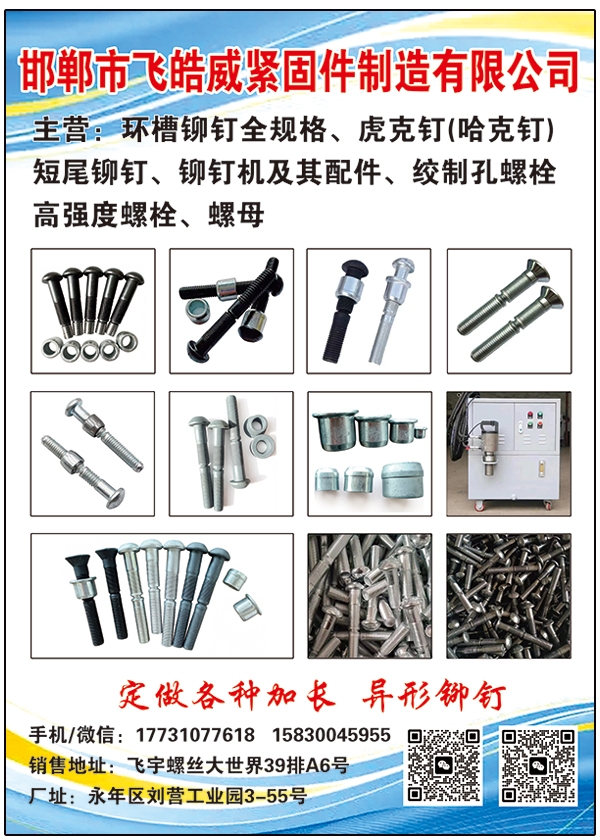 主营:环槽铆钉全规格、虎克钉(哈克钉)