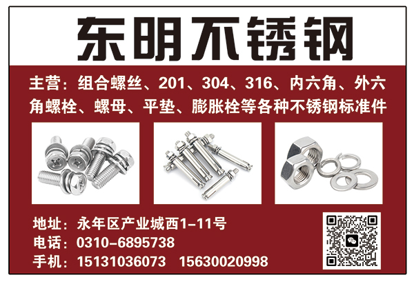 主营:201/304/316、不锈钢内六角螺栓、不锈钢外六角螺栓、不锈钢三组合螺丝、不锈钢圆钢、不锈钢角铁、不锈钢螺母、不锈钢平垫、不锈钢弹垫、不锈钢膨胀栓、不锈钢沉头、不锈钢自攻丝、不锈钢法兰母、不锈钢花兰、不锈钢卡头、不锈钢丝杠、不锈钢U型丝、不锈钢四方、不锈钢拉条,不锈钢丝杆等 不锈钢 不绣钢 标准件